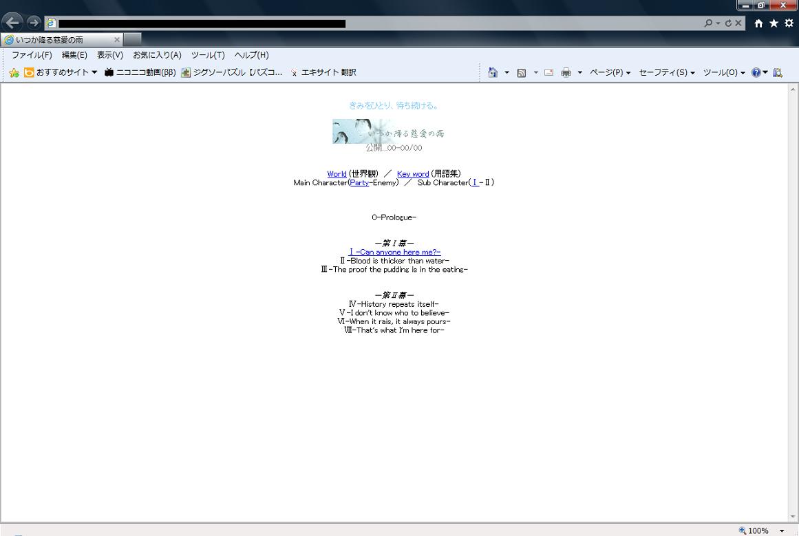 大まかな話の流れやキャラの設定、生い立ちなどは決まってるのでまた後々載せていけたらなーって感じです。特設ページの方は話が数話書きだめ出来たら公開しようと思ってます。今は1話だけ書いてあります。