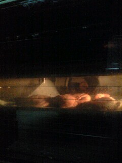 焼かれるチキン。超美味しかったです。犬にたかられたけど((