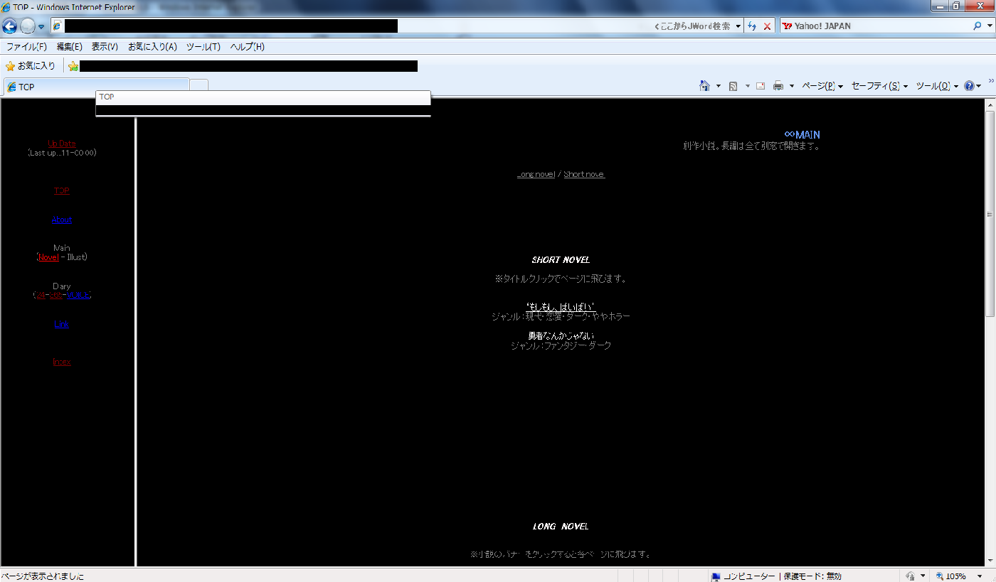 二枚目はメインページです。改装ついでに溜めといた短編も公開しようと思ってます。文章力に期待はしないでください。